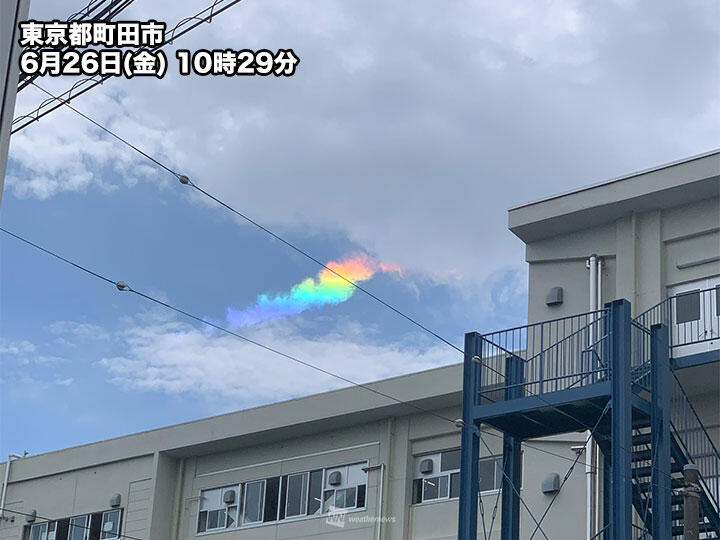 今日6月26日(金)の関東では、南の空にきれいな虹色の雲が見えているところがあります。