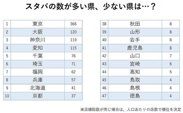 https://news.livedoor.com/article/detail/18631992/ 都道府県のスタバの数