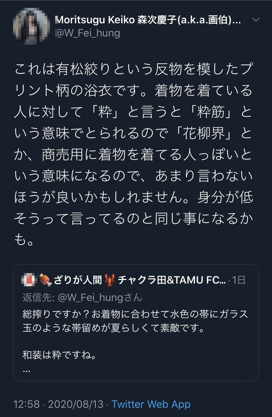 天才画家「着物姿Twitterにあげたら『粋ですね』と言われた!着物着てる人に粋は失礼!」
