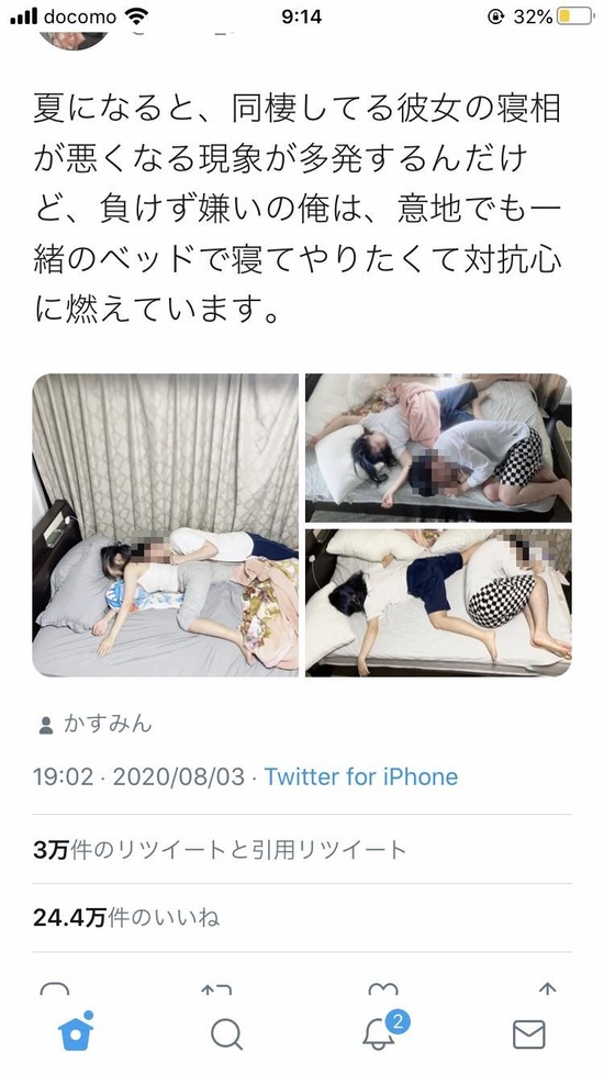 【画像】男さん、彼女の寝相の悪さをSNSで晒してしまうwww