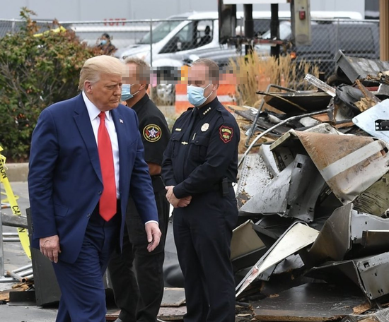 【画像】黒人デモで破壊された街を視察したトランプ、泣く・・・