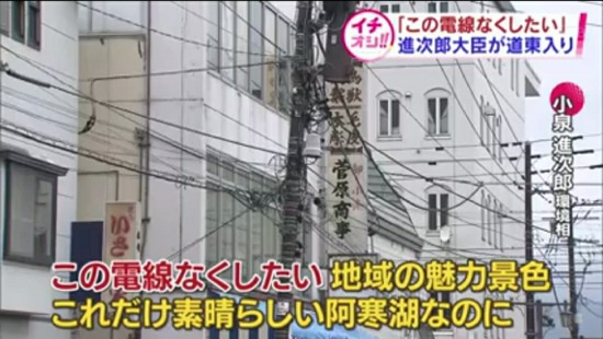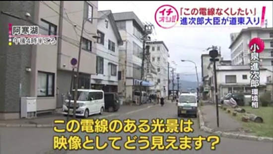 小泉進次郎環境大臣「この電柱のある映像どう見えます?この電線なくしたい。地域の魅力・景色、これだけ素晴らしい阿寒湖なのに。これを見れば何を改善しなければならないか一目瞭然ですね」
