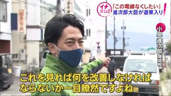 【画像】小泉進次郎「この電線のある映像どう見えます?何を改善すべきか一目瞭然ですね」電柱排除へwww