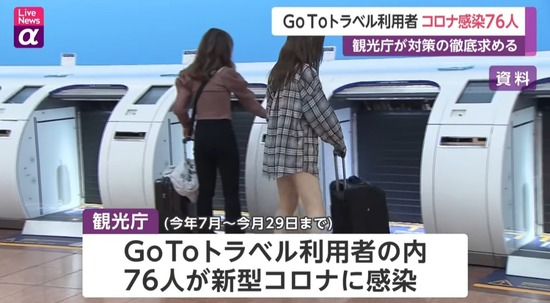 【画像】GoToトラベル利用者のコロナ感染者数がこちらwww
