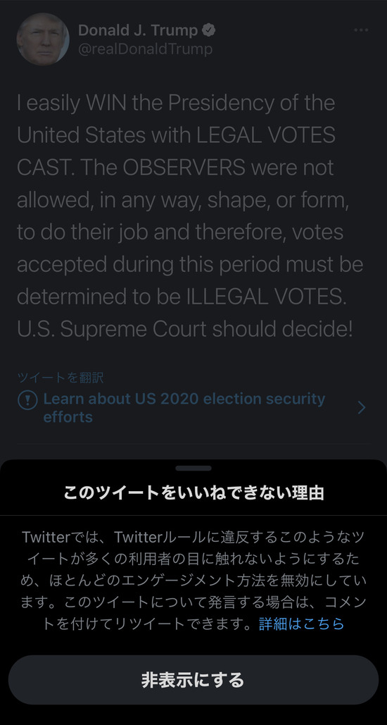 【画像】トランプさん、Twitter社直々にリプ・RT・いいね・共有一切不可の刑を執行されるwww