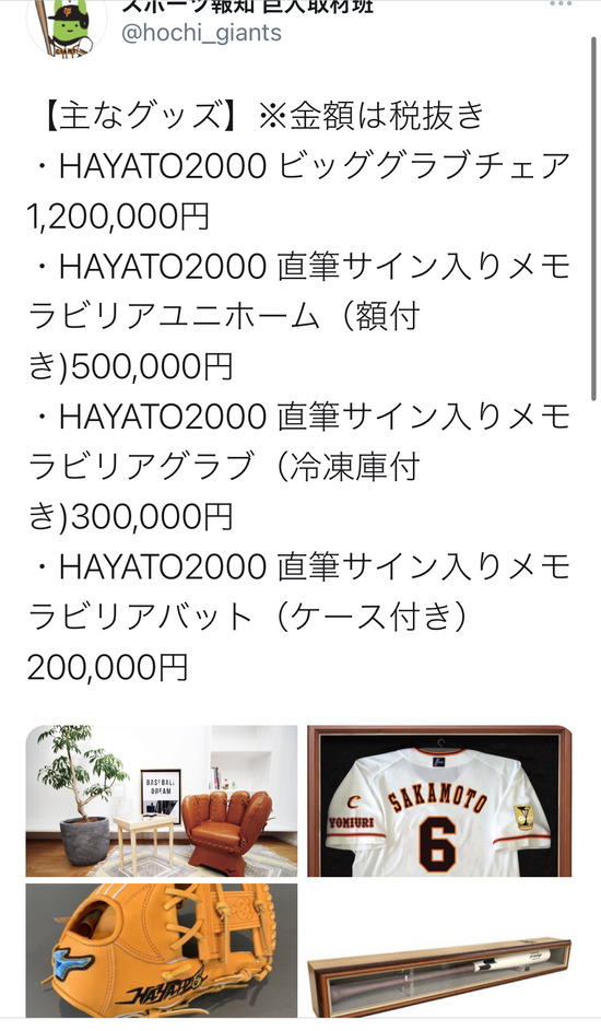 【画像】巨人、120万円の坂本勇人2000本記念グッズを発売するwww