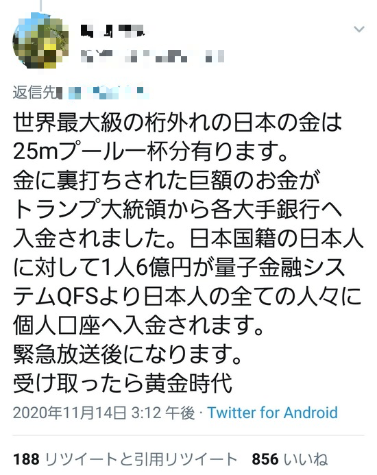 【画像】トランプ大統領が日本の銀行に30京円振り込み、日本人一人当たり6億円貰える模様www