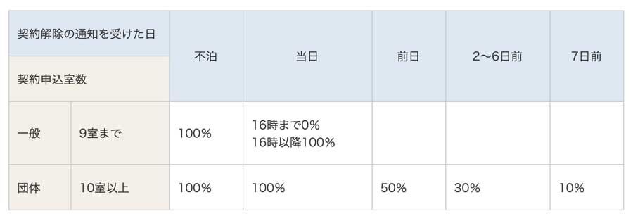 旅行会社と宿泊施設との間で取り交わされているキャンセル料契約は、宿泊日までの日数に応じて個別に決められている。一般的には当日なら100%、前日は50%前後、14日前前後ではほぼゼロになっているケースが多い。例えば東横インでは、チェックイン当日の午後4時までキャンセル料は無料となっている。