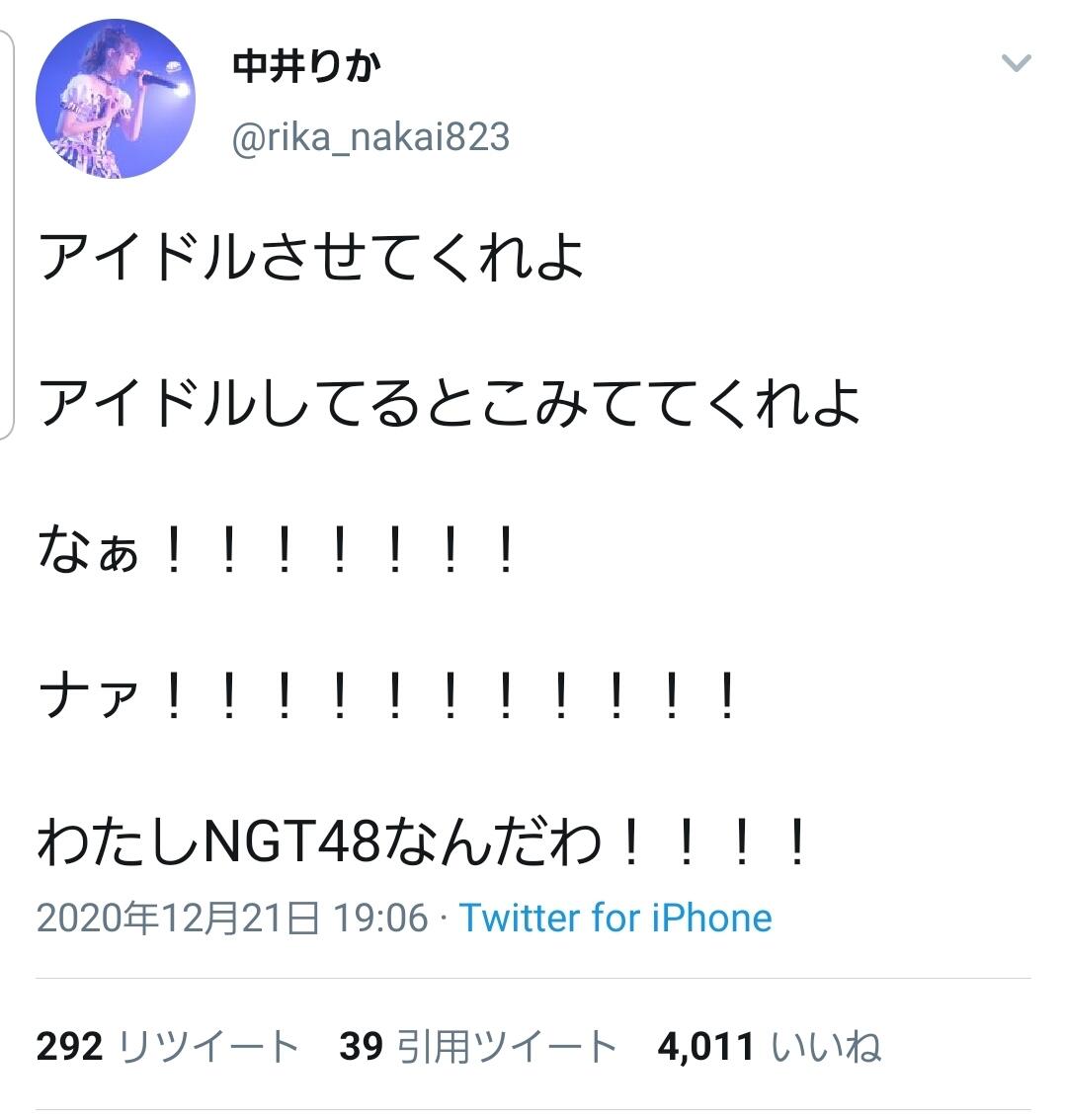 【画像】中井りかさんがガチ切れ「アイドルさせてくれよ!なぁ、あたしNGT48なんだわ!」