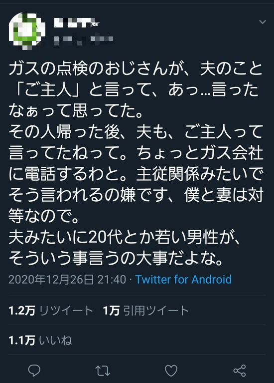 【画像】ガス点検のおじさん、人んちの夫を「ご主人」と呼んでしまい炎上www