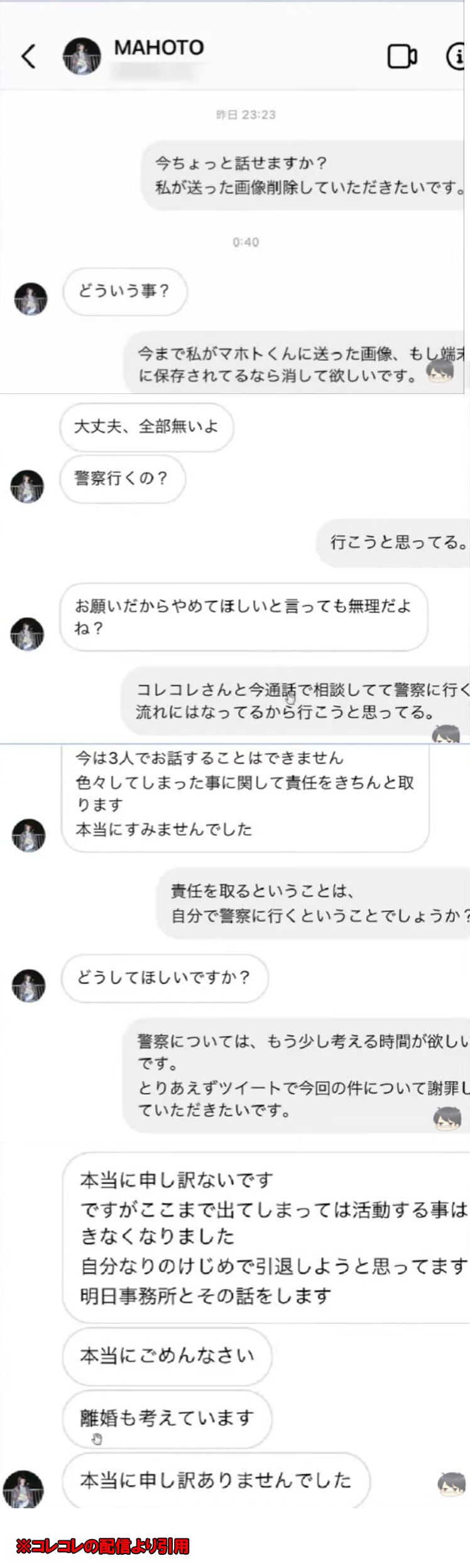 しかし同日に配信者であるコレコレが、ワタナベマホトの暴露を行った。その内容とは女子高生に対して