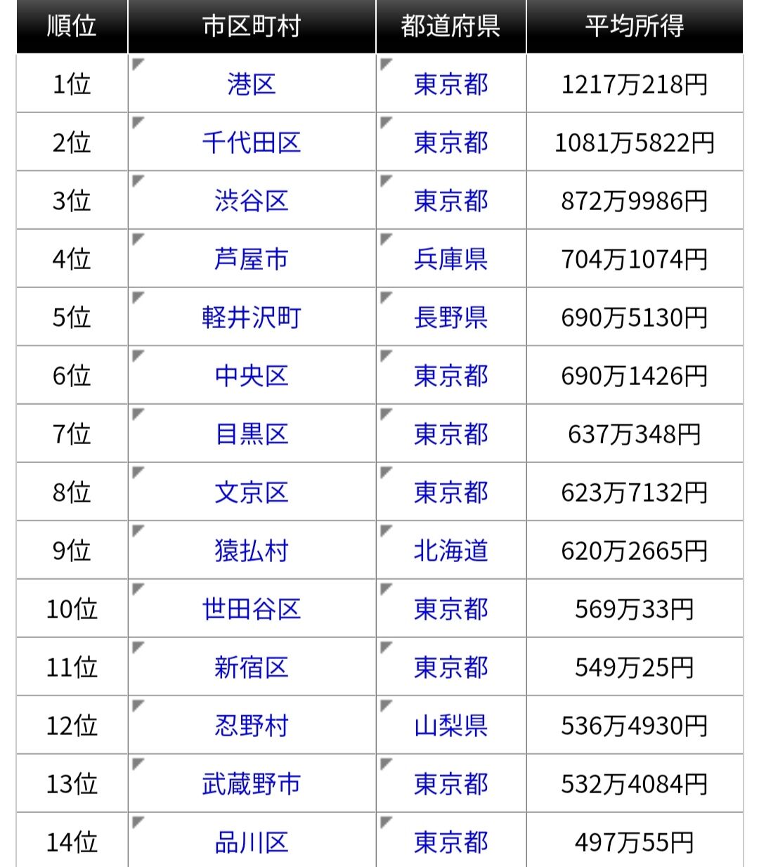 東京都港区「平均所得1217万円です」千代田区「1081万円です」大阪市「…」