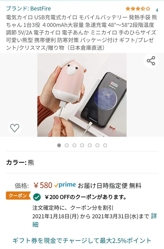 【画像】Amazonで充電式カイロが380円の大特価セール中www