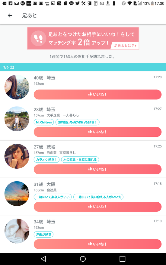 まだ初めて1日しか経ってないのに足跡が163人もついてる