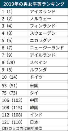 ジェンダー・ギャップ指数ランキング(全153カ国)