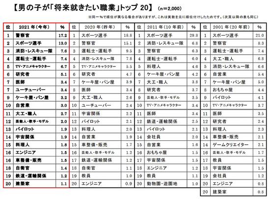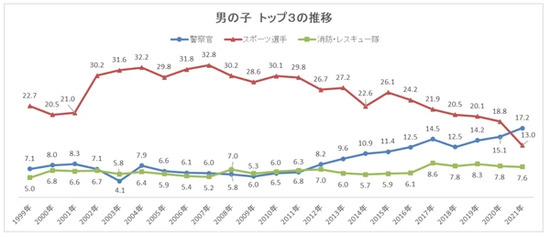 新・小学1年生が将来就きたい職業、男の子トップが23年で初交代!