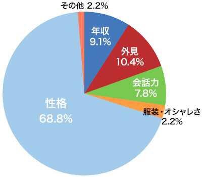 この数値から、多くの女性は見た目より内面を重視していることが分かりますね。各項目について、詳しい内容を見てみましょう。