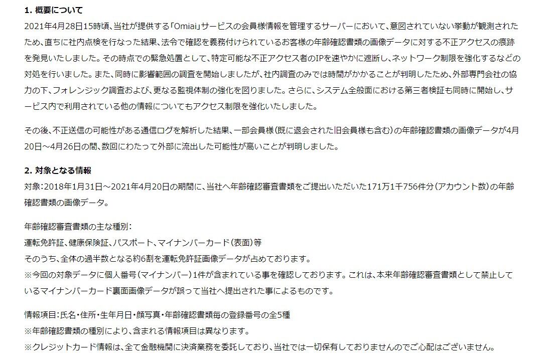 ホーム > 痛いニュース > 婚活サイトが不正アクセス 年齢確認書類171万件分が流出 マジでヤバイぞこれ 2021/05/21 1: キドクラッチ(東京都) [ニダ] 2021/05/21(金) 18:14:17.72 ID:SCTXh7kq0● BE:916176742-PLT(16000) 婚活サイト『Omiai』に不正アクセスがあったと株式会社ネットマーケティングが発表した。 (つづく) https://gogotsu.com/archives/64166 続きを読む - 痛いニュース