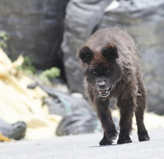 国道118号線福島県天栄村鳳坂峠で発見したこの奇妙な生き物。野犬のような熊のようなUMAのような。