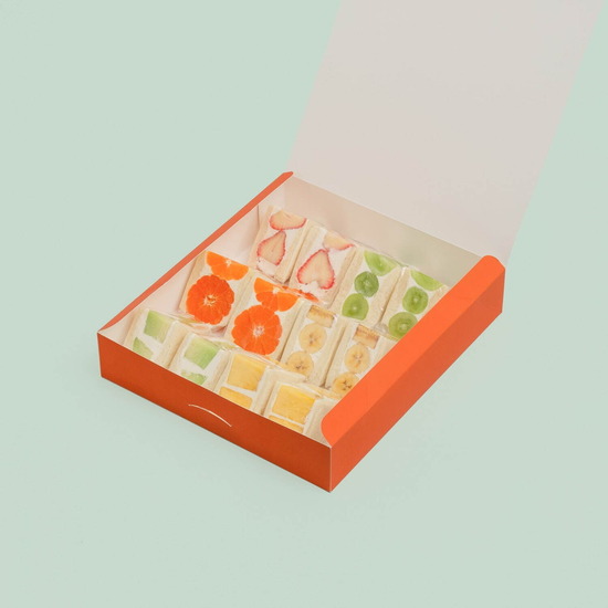 さまざまなフルーツサンドを一度に味わうことができるようにと、4個入りと12個入りのバラエティギフトタイプで提供される。