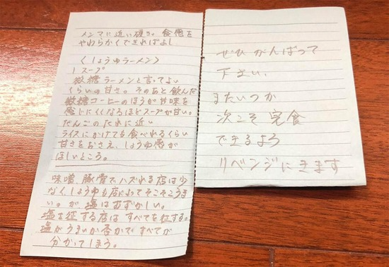 【画像】ラーメン評論家、とんでもないメッセージをラーメン店主に送るwwwwwww