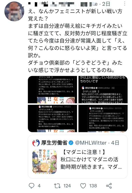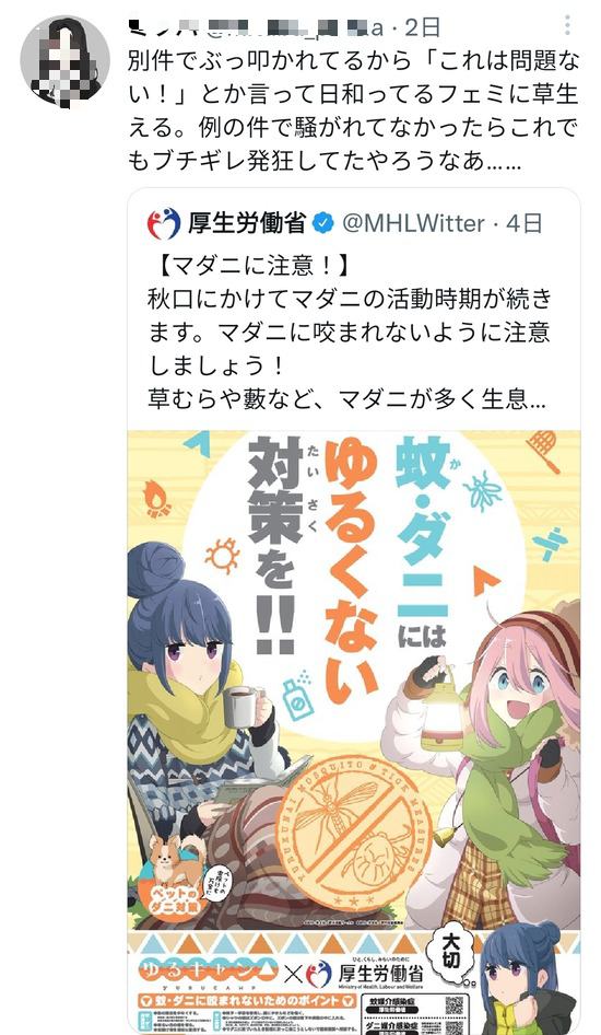 【画像】オタクさん、厚労省のポスターにフェミが発狂しなかった事に発狂してしまうwww