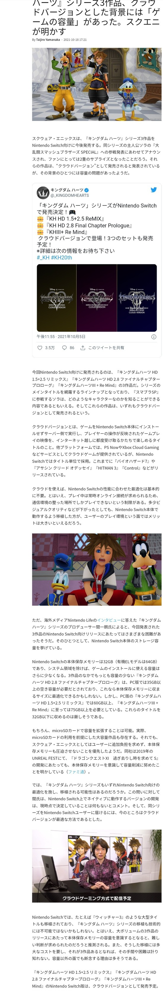 【画像】スクエニ「すまんSwitchの容量が少なすぎてキングダムハーツまともに移植できんかったわ」