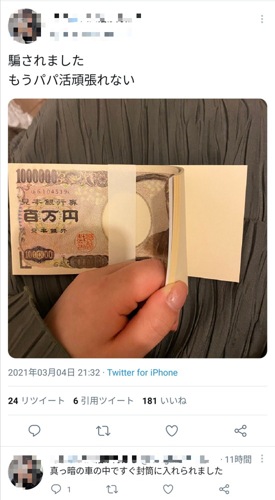 【画像】女さん、パパ活で100万稼いでしまう・・・・・