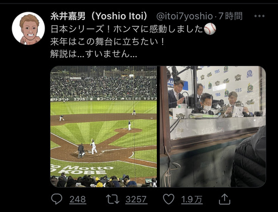 【画像】糸井、日本シリーズの解説を反省していた模様wwwww