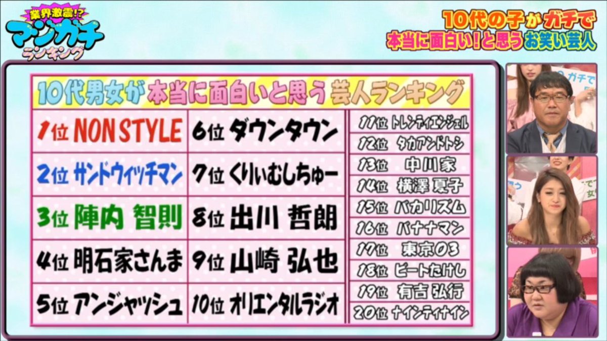 【悲報】10代男女が本当に面白いと思う芸人ランキングの結果wwwwwwwwww