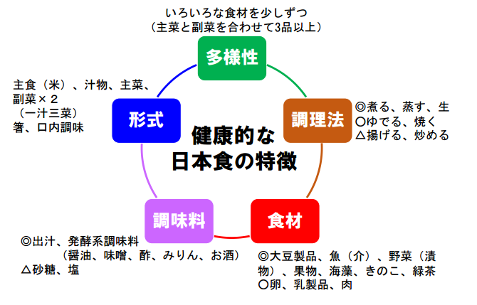 世界中で多くの研究がなされているが、これらの研究は、特定の食品成分にだけ焦点が当てられ、「日本食」全体を調べた研究はない。東北大学大学院の都築毅准教授らのグループはかつて、現代と過去の日本食をマウスに食べさせる実験で、1975年ごろに食べられていた食事が、