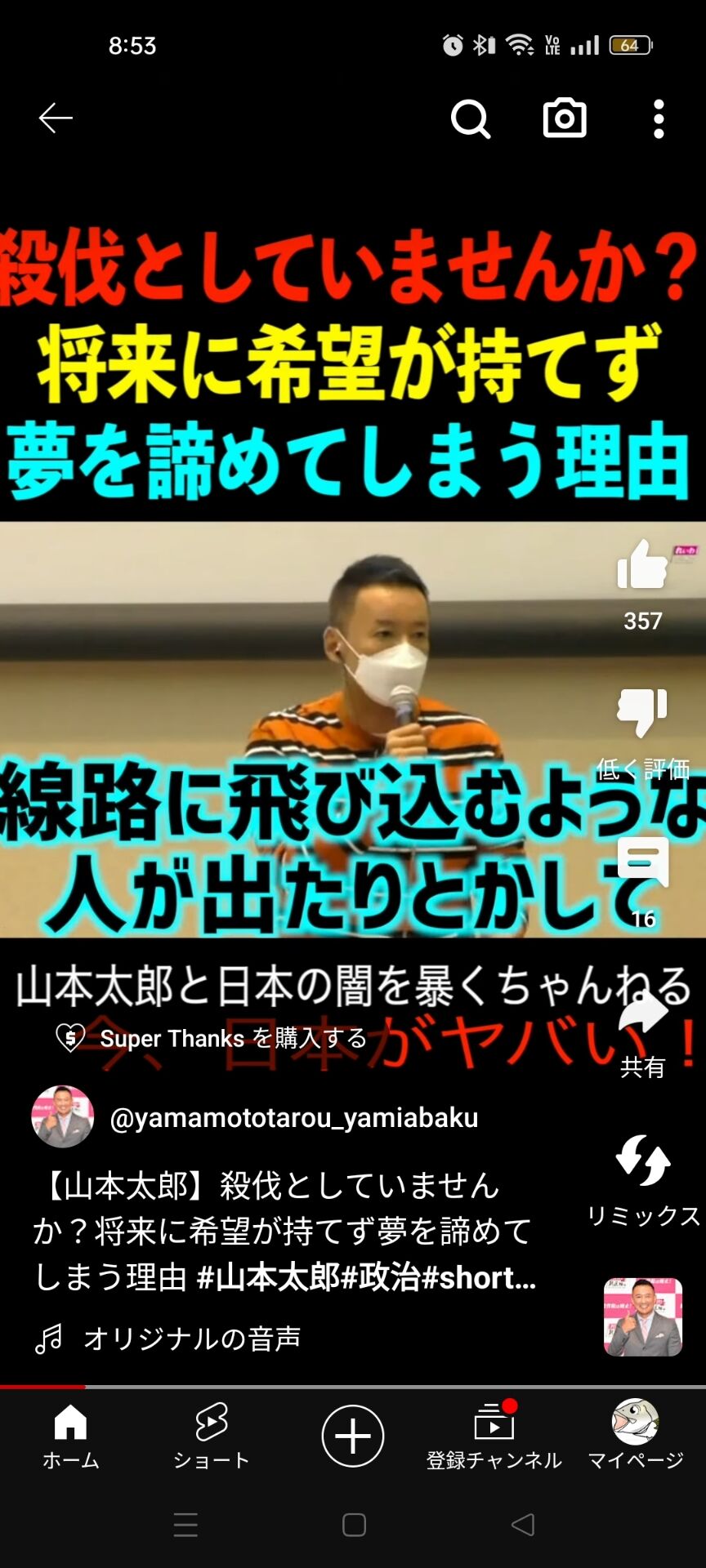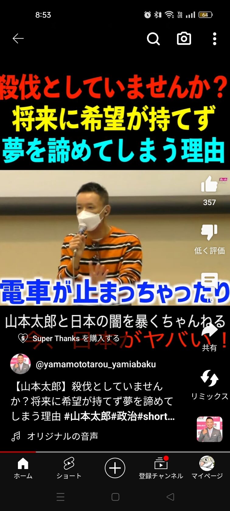 山本太郎さん「電車に飛び込みとかして遅れたら舌打ちが出るような殺伐とした社会はおかしい!」