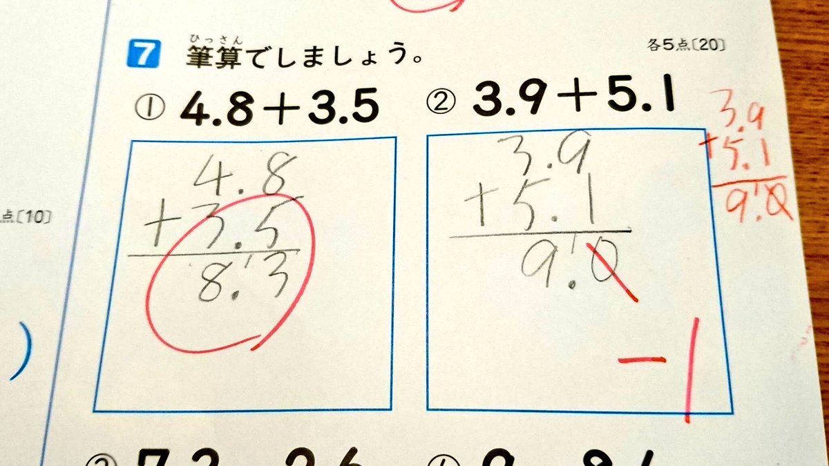 発端となったのは、あるTwitterユーザーが投稿した「“3.9+5.1”の計算に対して“9.0”と書いた答案が減点されていた」という画像。