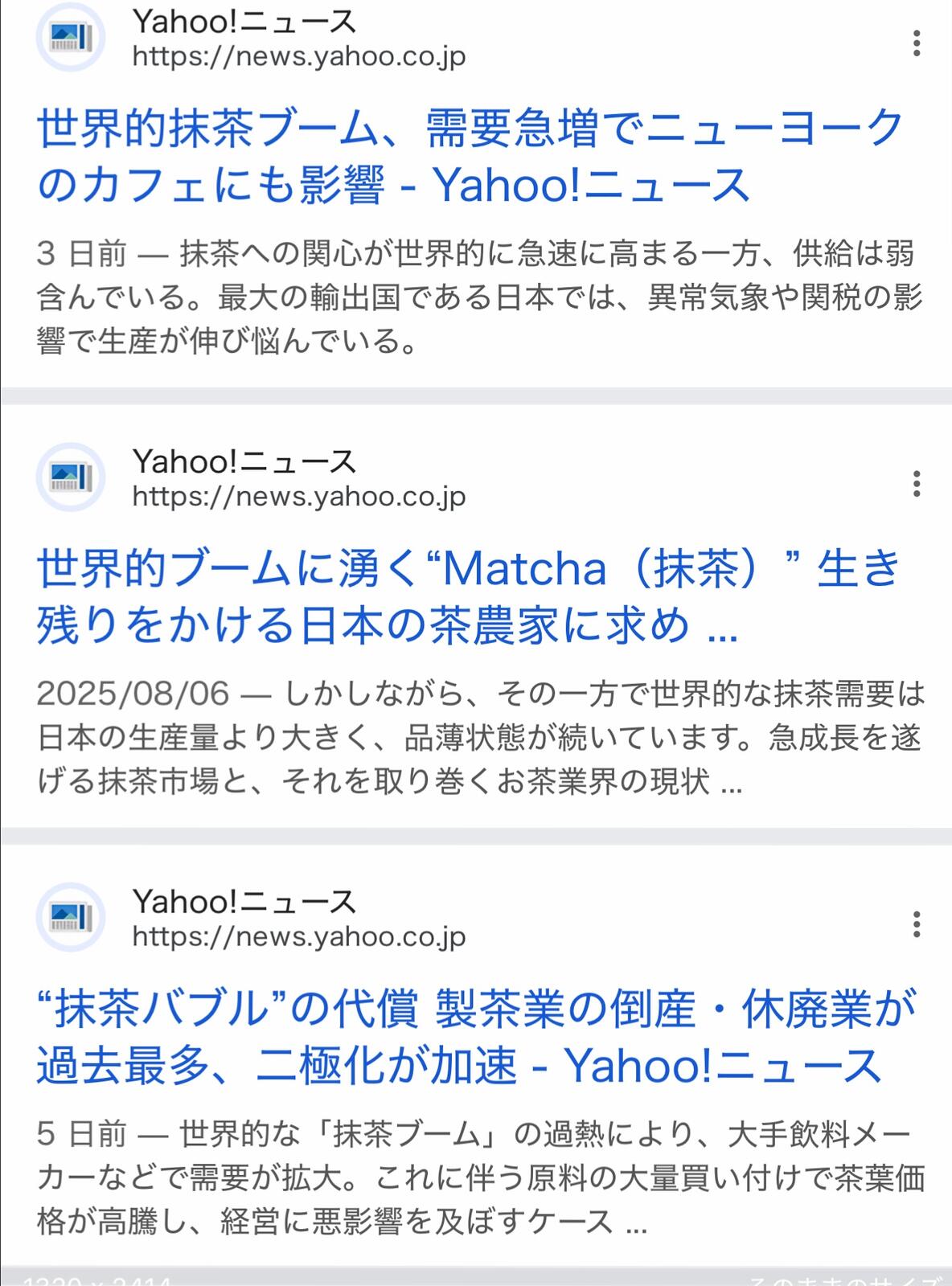 ホーム > 画像ネタ > 【画像】抹茶、世界で大流行りしてまう 2025/08/20 1: 以下、名無しにかわりましてネギ速がお送りします 2025/08/19(火) 00:27:00.98 ID:atk4zepj0 すげえ 2: 以下、名無しにかわりましてネギ速がお送りします 2025/08/19(火) 00:27:27.96 ID:atk4zepj0 がちですごいよ抹茶 みんな飲んでる 3: 以下、名無しにかわりましてネギ速がお送りします 2025/08/19(火) 00:28:15.46 ID:qkH4AU+s0 伊藤園が抹茶の値段を2倍にすると発表してたな 続きを読む - 画像ネタ