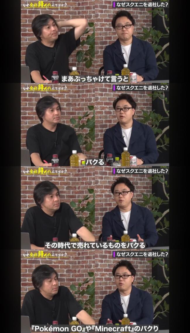 ホーム > 画像ネタ > 【画像】元スクエニのプロデューサー「もうパクり企画しか通らない」→動画削除 2025/09/03 1: 以下、名無しにかわりましてネギ速がお送りします 2025/09/02(火) 07:06:35.21 ID:4EADyxV20 ↓ 2: 以下、名無しにかわりましてネギ速がお送りします 2025/09/02(火) 07:06:47.95 ID:4EADyxV20 知ってた 4: 以下、名無しにかわりましてネギ速がお送りします 2025/09/02(火) 07:07:35.21 ID:xFdNKcQ80 ダイの大冒険の利益喋ったあたりが不味かったんちゃうの? 続きを読む - 画像ネタ