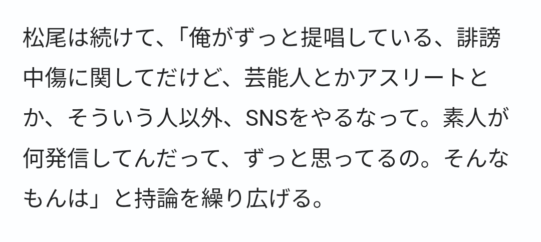 【画像】チョコプラ松尾「SNSは有名人のもの。素人は使うな。素人の発信なんか意味ない。有名人の発信を見ろ」