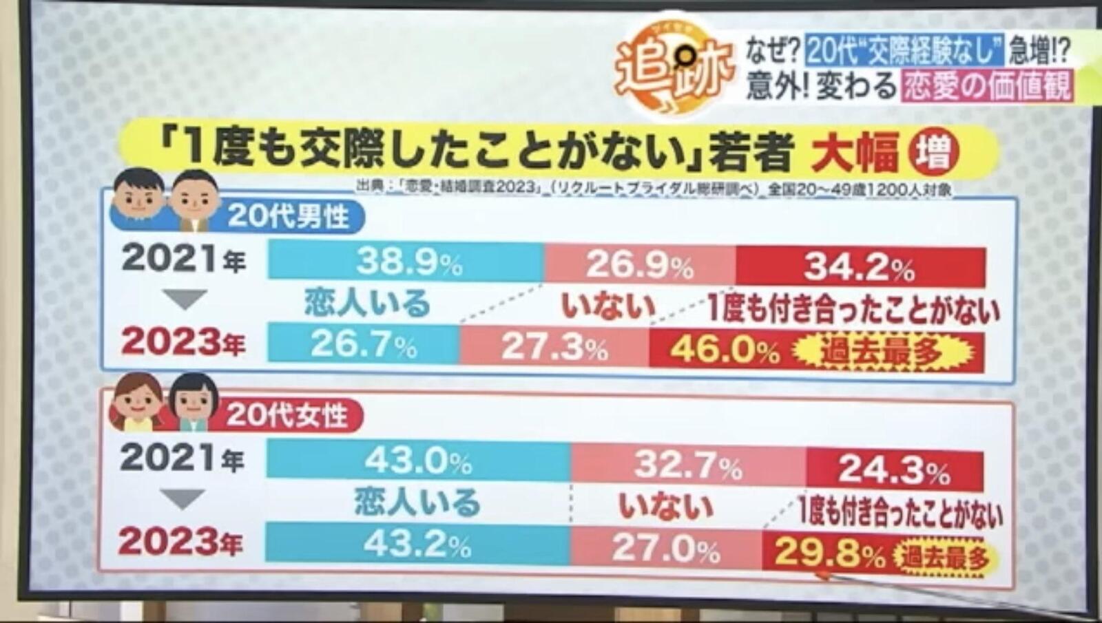 女性だけでなく男性も高望みになっているせいで、彼氏も結婚率も下がっている
