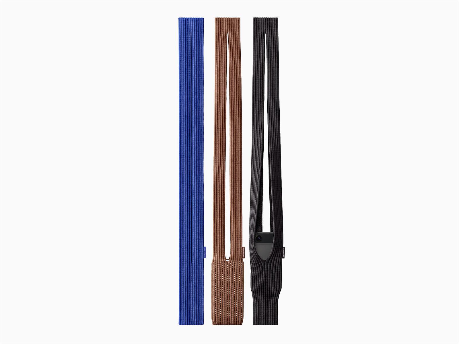 「iPhone Pocket」は、イッセイ ミヤケによるプリーツ素材に着想を得たリブ編みのオープン構造を持つニット製アイテム。オリジナルの3Dニット構造を採用し、「一枚の布」のコンセプトからインスピレーションを得たデザインが特徴という。