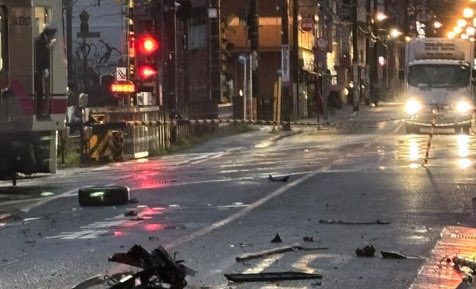 車と電車が衝突