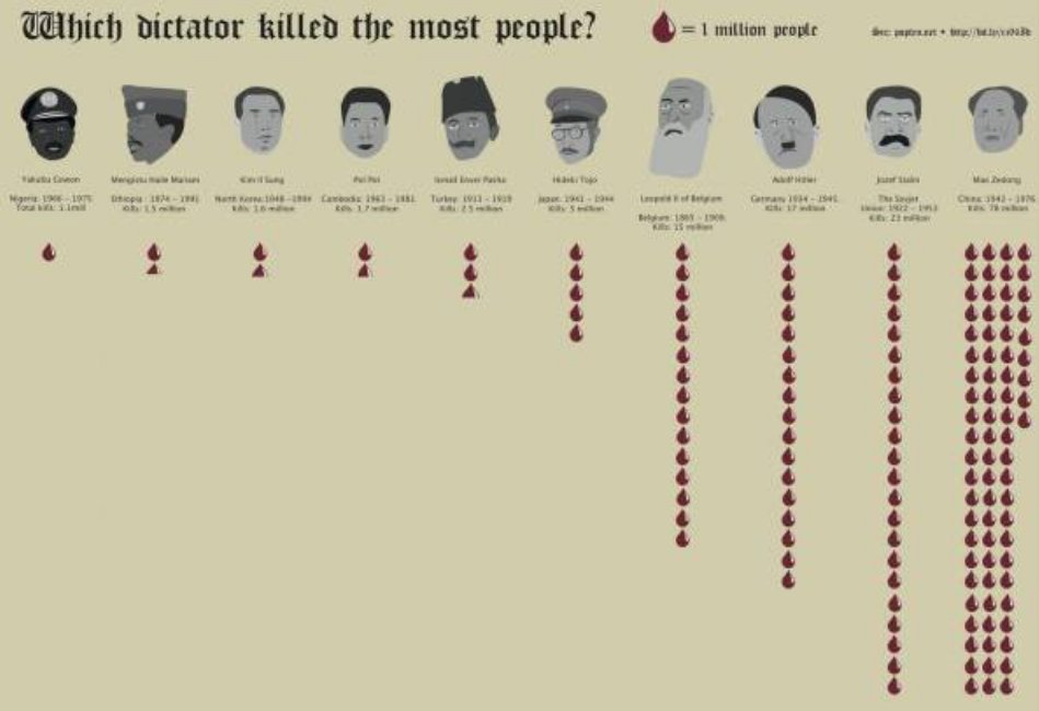 5億にも経たなかったことを考慮すれば、人口比で計算すると、歴史上最も人を多く殺した国と言える。