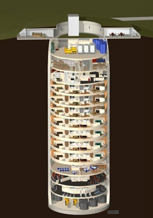 地下15階の分譲式マンションで、価格は1区画150万ドル(約1億7,000万円)~300万ドル(約3億4,000万円)。核戦争を始めとした世界終末を、「快適に」生き残れるように設計されているのが特徴だ。