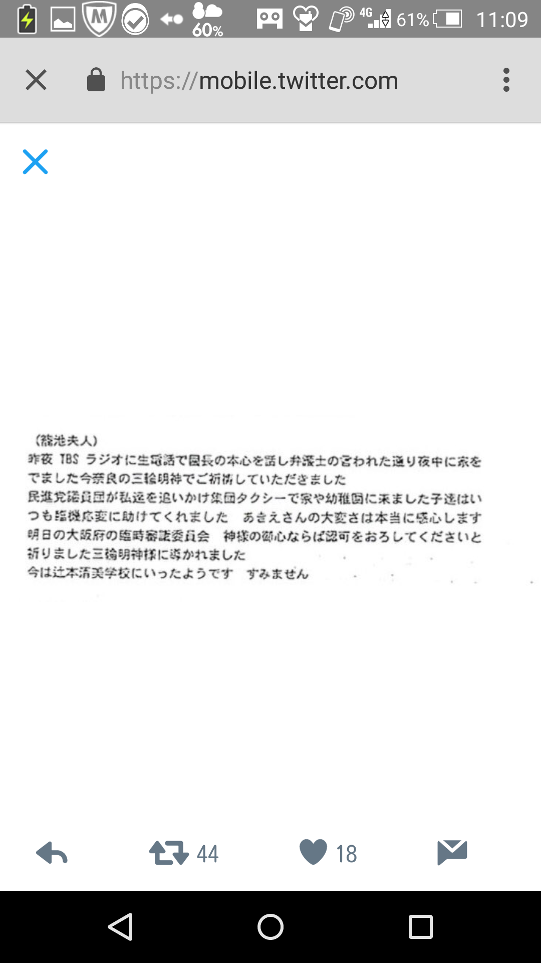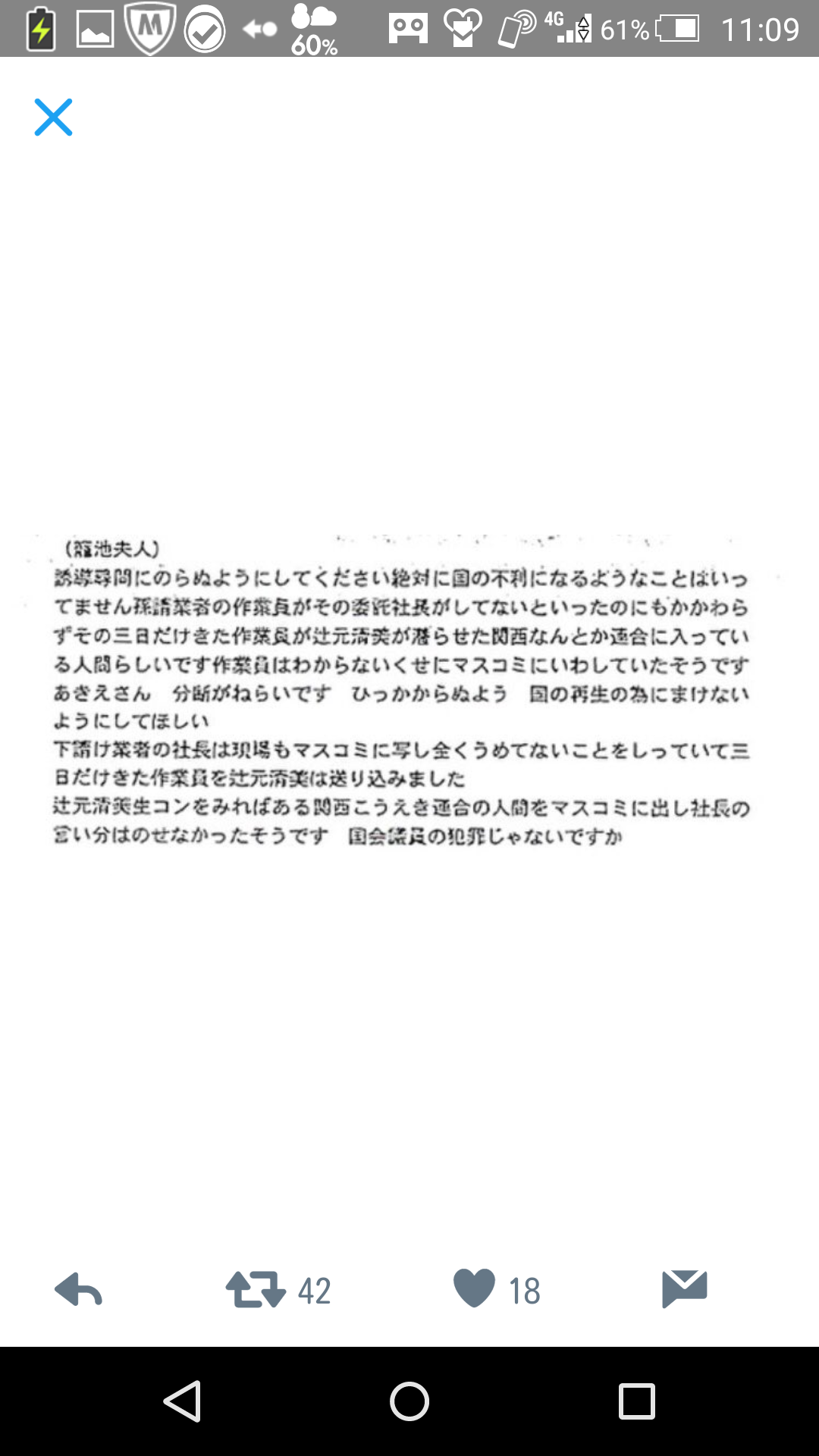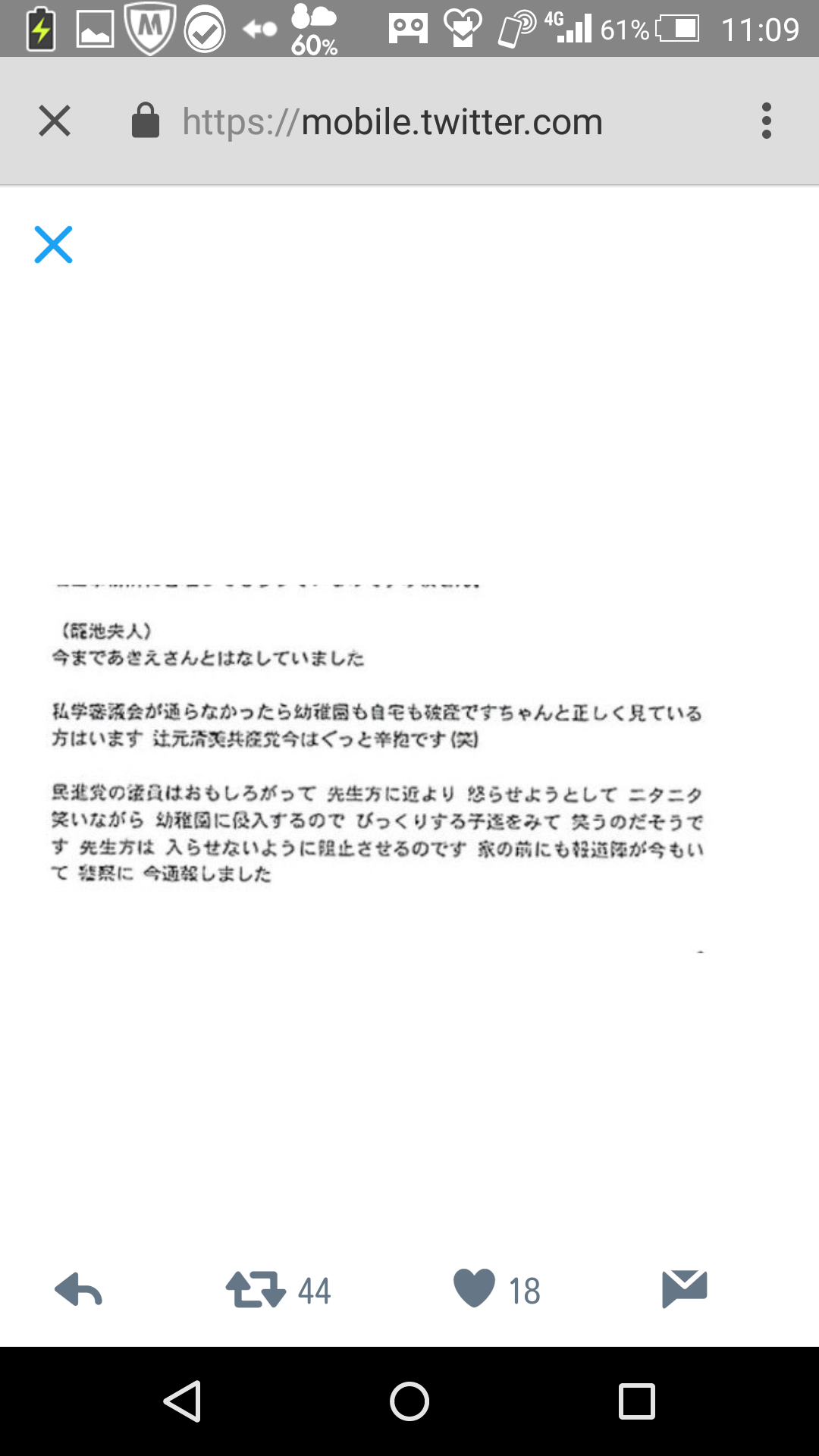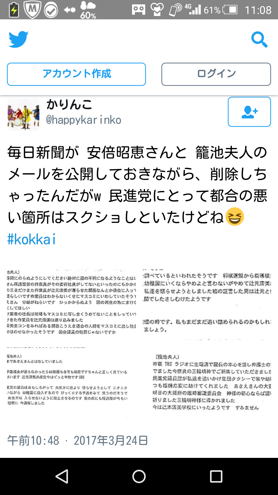 籠池氏が喚問で「昭恵夫人から、口止めとも取れるメールが届いた」と証言した部分の前後では、籠池氏の妻が2月25日に、自民党議員から「(学園に飾られた)昭恵さんの写真を外してほしいといわれた」と送信。昭恵夫人が「私もよくわかりませんが、色々気を付けなくてはいけないことがあります。私が関わったということは、裏で何かがあるのではと疑われないように細心の注意を払わなくてはならない」と返信していた。