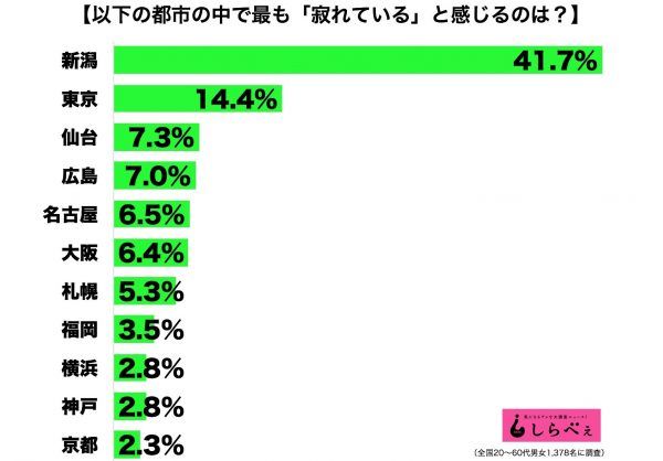 全国20~60代の男女1,378名を対象に調査を実施した。■「新潟」が圧勝! 意外にも東京も…