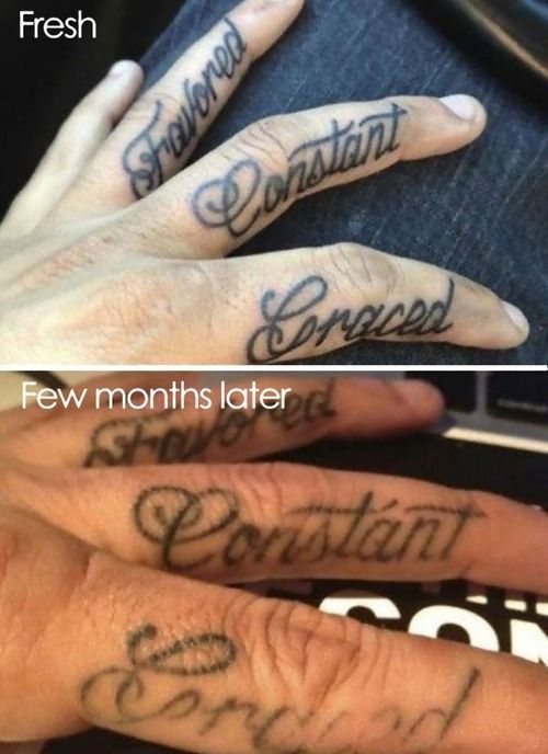 タトゥーそのものは残っても、色あせたり文字が識別できなくなったりと、劣化が見られますね。